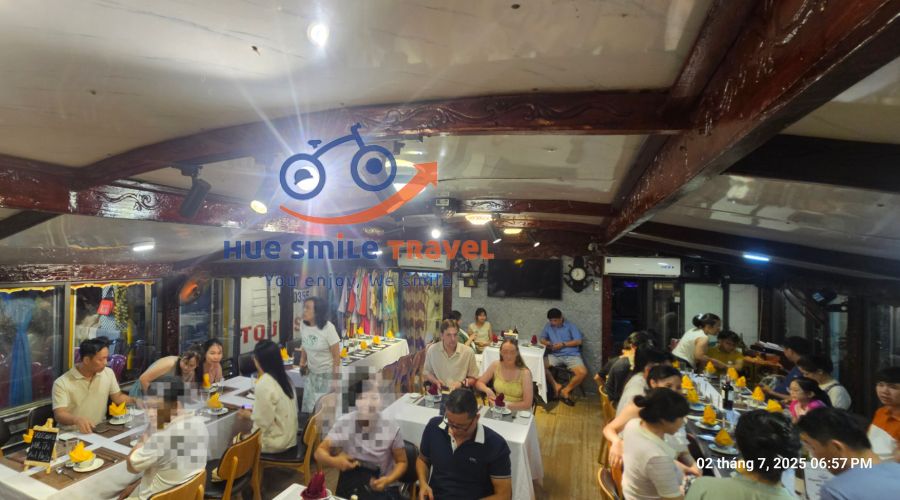 Mình đến Huế 2 ngày , tự thuê xe máy tham quan Huế. Buổi tối mình đặt tour ca Huế tại Hue Smile , giá 600,000 vnd có cả ăn, nghe ca và măc cổ phục. Buổi tối đi trên sông Hương, nghe ca Huế rất thú vị, mình được giao lưu cùng các ca sĩ tìm hiểu về nhạc cụ. Chương trình chất lượng, rất đáng để trải nghiệm. Cảm ơn Hue Smile đã cung cấp dịch vụ chu đáo.