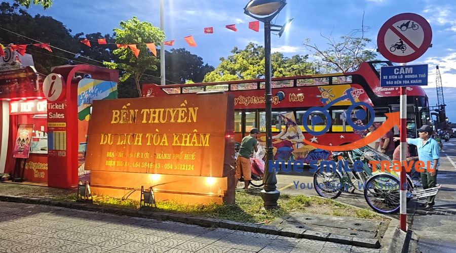 Du khách sẽ được chào đón nồng nhiệt tại bến thuyền Tòa Khâm, nơi bạn có thể diện những bộ đồ cổ phục Huế truyền thống để chụp ảnh và hòa mình vào không gian văn hóa đặc sắc (Du khách tự túc đến bến tòa Khâm).